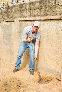 We began the day working here at the guest house, it's not every team's ideal first day of ministry but it was an awesome way for our team to serve those who are constantly pouring out of themselves to these people. It was really cool to see everyone work with such enthusiasm, even though we had very little contact with the Burkinabe. We spent all morning digging 18 inch holes in the side lot where all of the team and construction stuff is stored, it was a lot of hard work and even harder when we figured out half of our holes needed to be shifted. After digging all morning we put the posts in the ground and the Burkinabe helped fill the holes with concrete.